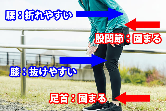 「膝が抜ける」とは、足首・膝・股関節の中で、膝が最も動きやすい状態をいいます。