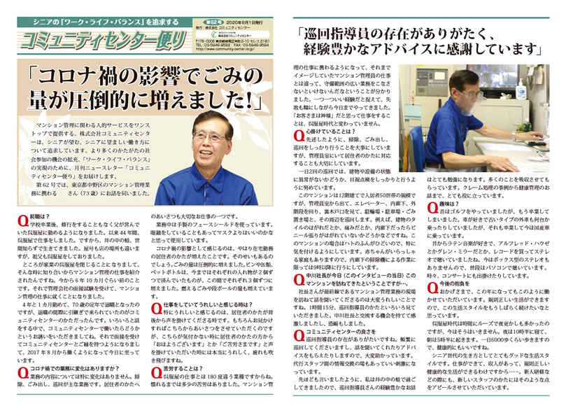 第62号では、東京都中野区のマンション管理業務に携わるMさん(73歳)にお話を伺いました。