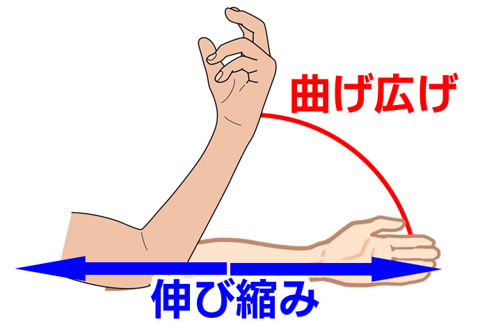 肘の「曲げ広げ」と腕の「伸び縮み」は違います。