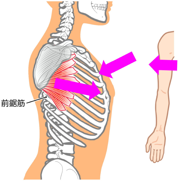 脇下のあばら骨にある主に前鋸筋を締める行為です。