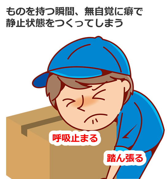 持つものが重いと思えば思うほど、一瞬、足を踏ん張り呼吸を止めて、それから持ち上げていませんか?