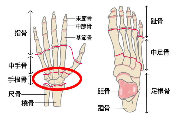 まず手首が手根骨という8つの骨から構成されてぢる幅のある部位であることはご存じでしょうか?
