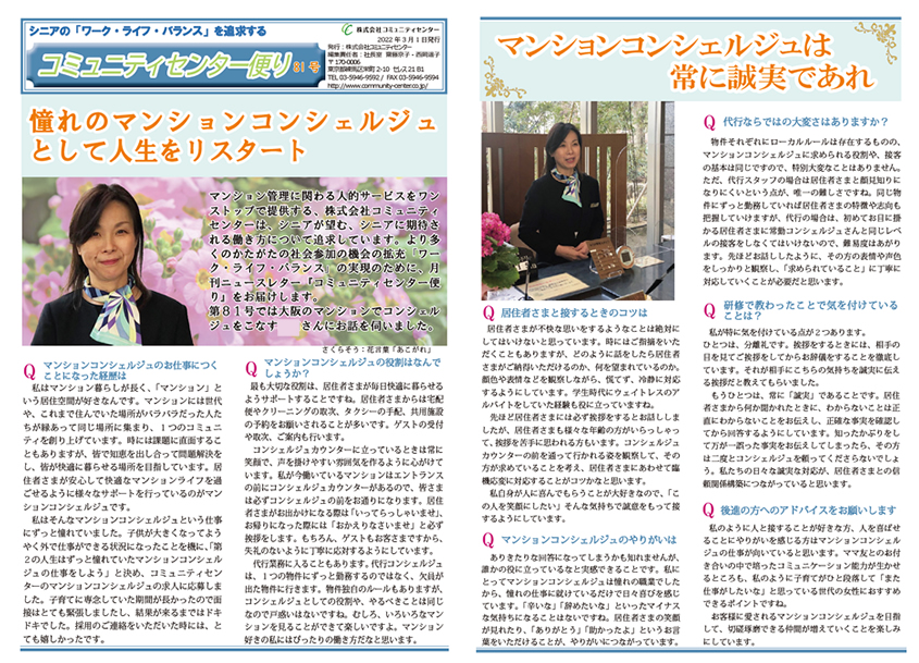 第81号では大阪のマンションでコンシェルジュをこなすTさんにお話を伺いました。