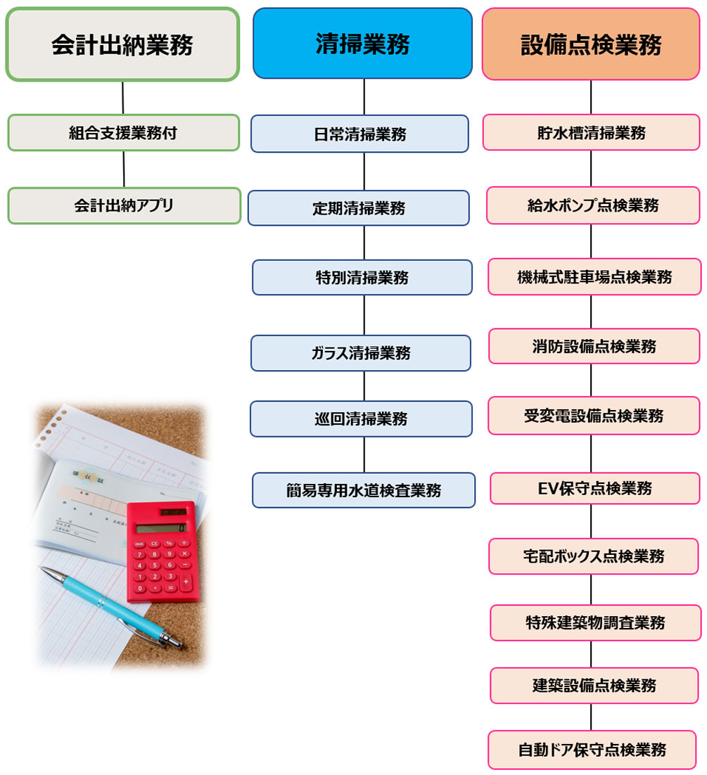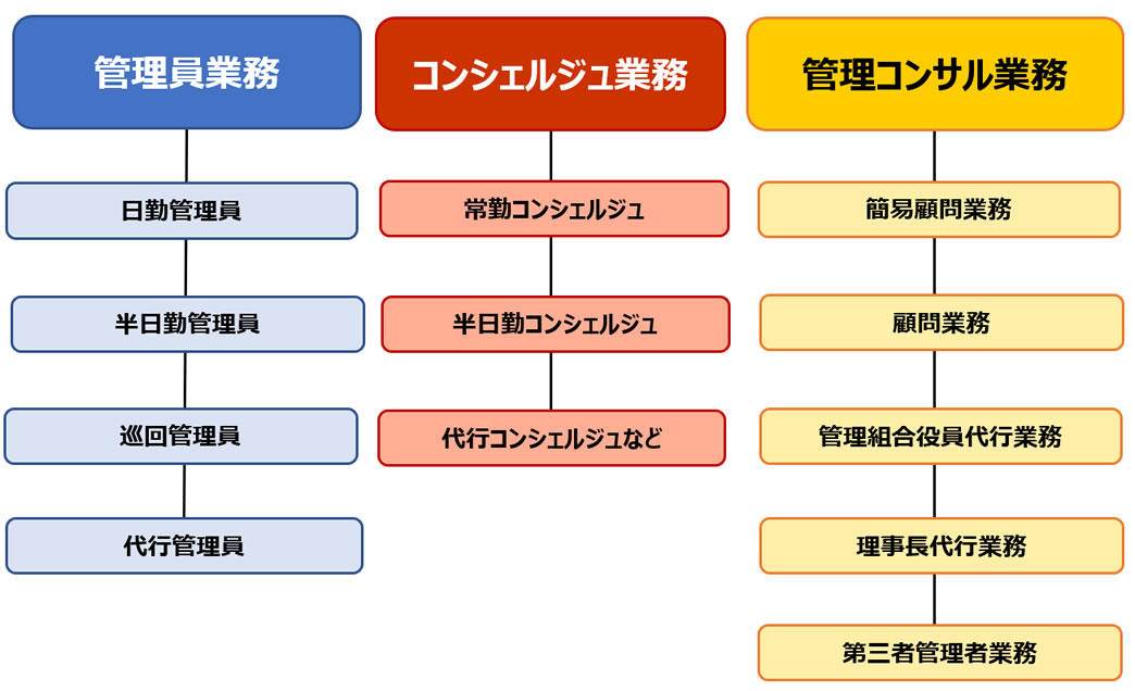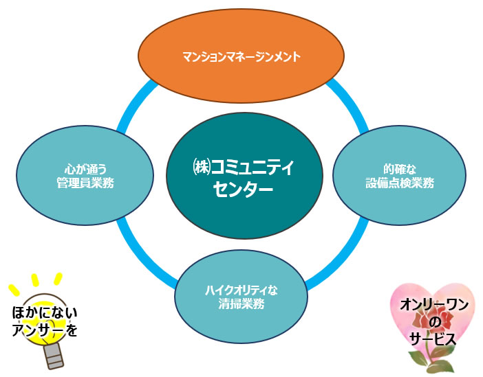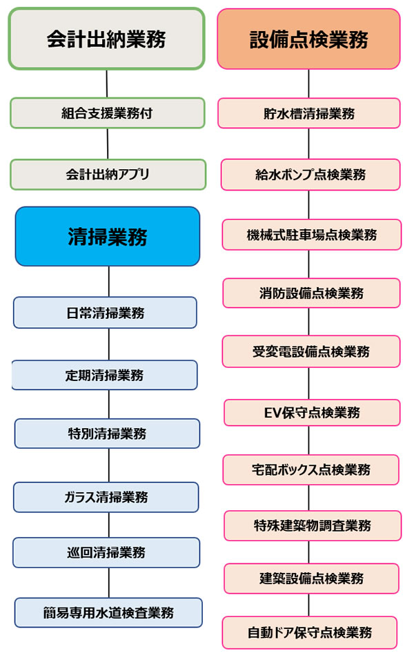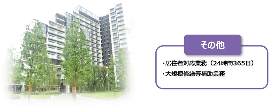 | 事業内容 | ・マンション管理員業務、マンションコンシェルジュ、清掃業務、教育・研修業務、インスペクション |