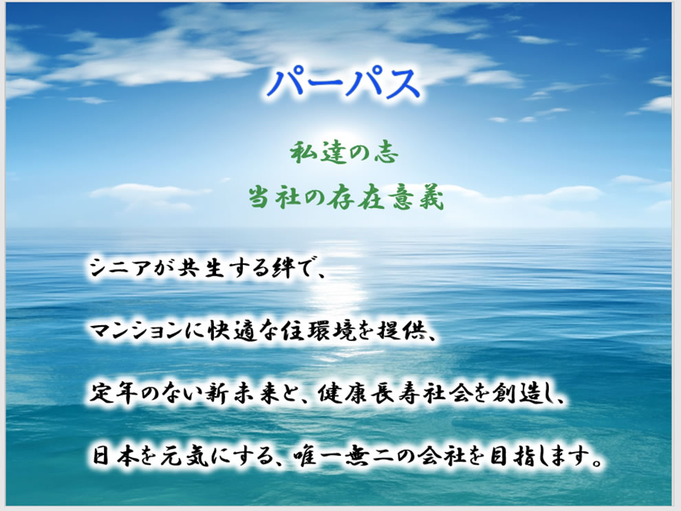 ●顧客ニーズと時代の要求を先取りするマンション管理代行業のパイオニアとして時代に沿った新たなサービスを付加し、社会に貢献する。