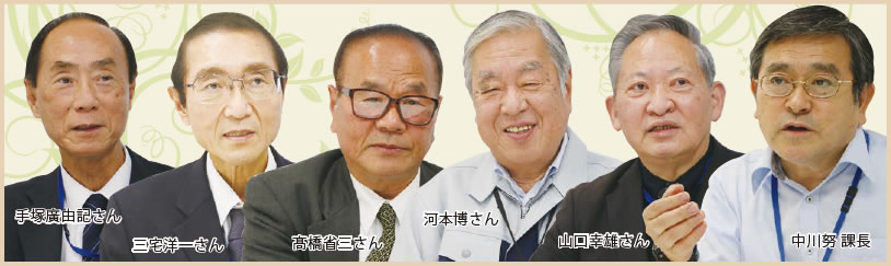 左から手塚廣由記さん、三宅洋一さん、髙橋省三さん、河本博さん、山口幸雄さん、中川努 課長