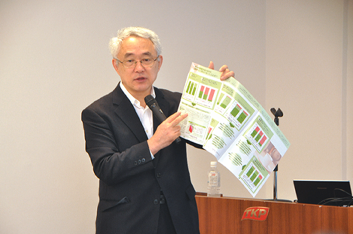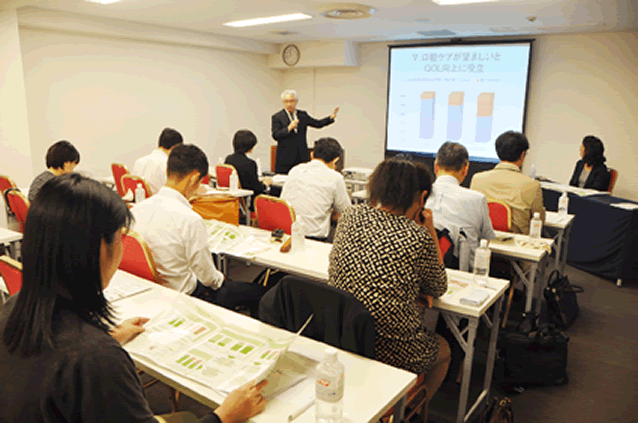 9月8日、都内の会場で、首都大学東京の星旦二名誉教授との協働研究の結果を報告する当社記者発表会が行われました。「働くシニアの健康寿命の背景と関連要因」をテーマとする協働研究は、60 歳以上のシニア世代の就労に特化した当社にとって大変意義深いものです。調査は今年1月から60 歳以上の当社登録代行員475 人を対象に行われました。記者発表会では、星名誉教授が協働研究の調査結果とその分析について、時折ユーモアも交えながら、専門家の立場から詳細に解説しました。記者発表会終了後、星名誉教授にインタビューしました。