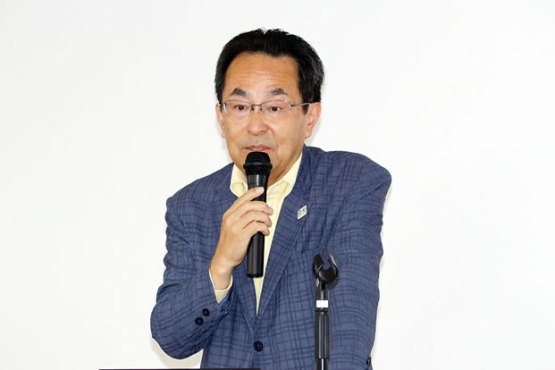 乾杯の音頭を取った代行員の秋山晃一さん