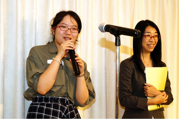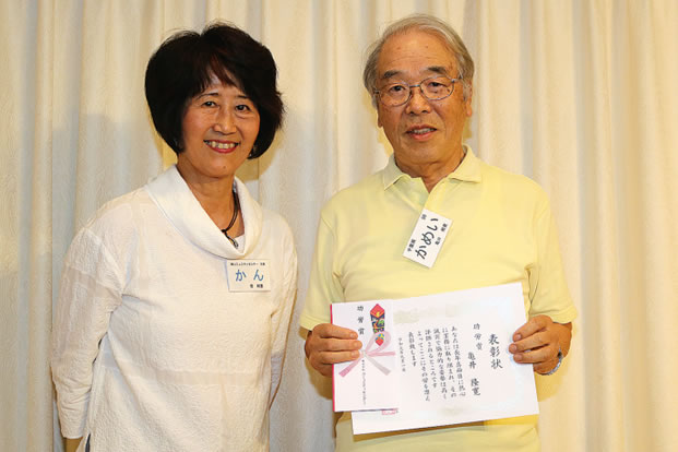 「感謝の集い」では、第 26期の表彰式が行われ、今期は 16人の代行員のかたがたが「功労賞」受賞しました。 余興では、お笑いタレントのゆんぼだんぷが登場。文字どおり、体を張ったパフォーマンスで会を盛り上げました。