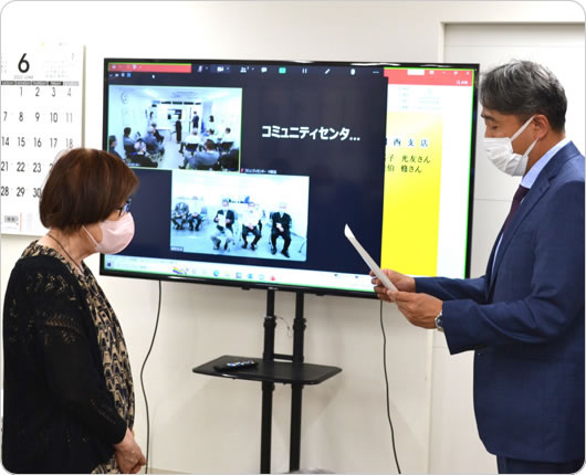 6月17日、東京本社と関西支店の研修センターをオンラインでつなぎ、登録から10 年経過したスタッフの「10年表彰式」を開催いたしました。研修センターでの開催は初めての試みです。今回の表彰対象者は東京本社26名、関西支店2名。当日の表彰式には本社スタッフ11名、支店スタッフ1名の方にご出席いただきました。代表社員のあいさつから始まり、感謝状授与の際には表彰された方がたからコメントをいただきました。最後に代表取締役中川社長が感謝の思いと近況について述べられ、表彰式後には、社員との交流時間をもうけさせていただきました。