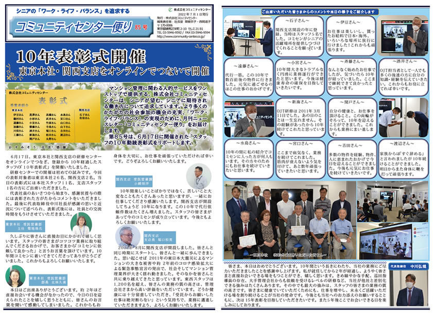 第85号は、6月17日に開催された「スタッフの10年勤続表彰式をリポートします。