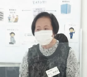 宇野さんと同じく大手管理会社でのマンション管理員経験を経て当社に登録された土代さん、今現在は弊社が長期で契約している神戸の物件にて、6名いる清掃グループの中でサブリーダーとして、リーダーのサポートをしながら、清掃業務に励んでおられます。コミュニティセンターの一員として責任もって日々の業務に取り組んでくださっています。居住者さまを大切にしている熱い思いが伝わってくる発表でした。