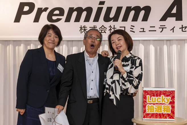 2024年10月20日東京、11月24日大阪で「プレミアムアワード~絆の会~」を開催。東京、大阪併せて150名を超えるスタッフの方にご出席いただきました。長きに亘り業務してくださっている方へ感謝状贈呈し、コミュニティセンタークイズや抽選会などで盛り上がり、スタッフ同士の絆を深めていただきました。