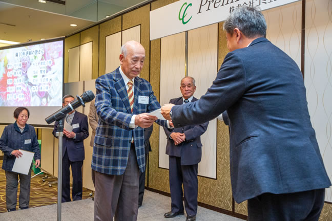 さて今回、ご招待させていただきました中には、登録から15年以上が経過された方も10名以上いらっしゃいます。その方々から「20年を目指して頑張りたい」といったお言葉や、14年目を迎えた方から「来年、必ずこの場で表彰されるよう引き続き頑張ります」といったお声をいただき、大変心強く感じております。