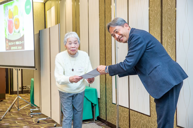 ご覧いただきました動画にもありましたが、昨年策定した当社のパーパスには、「定年のない新未来と、健康長寿社会を創造」という言葉を掲げています。本日お集まりの皆さまは、まさにその健康長寿を体現し、力強く牽引してくださっている方々です。登録してから日の浅いスタッフや、これからマンション管理員を目指す後進の方々の道標となっていただきたいと願っております。