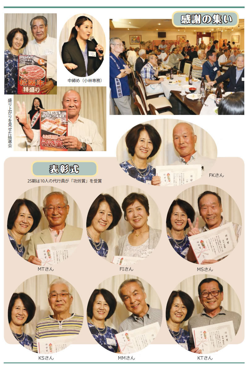 「感謝の集い」では、第 25期の表彰式が行われ、今期は 10人の代行員のかたがたが「功労賞」受賞しました。