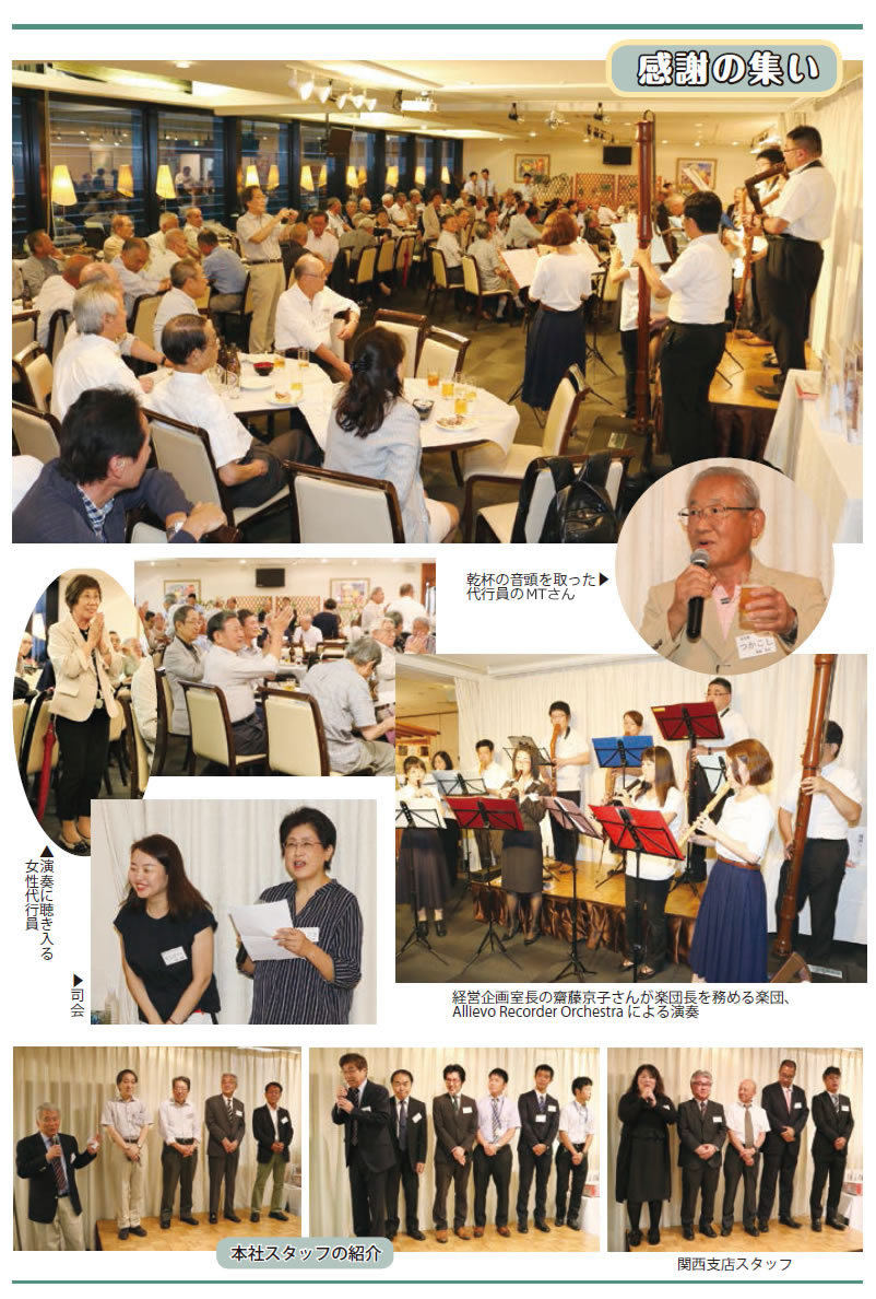 研修会終了後、参加者は「感謝の集い」の会場に移動し、本社スタッフ、代行員の皆さんの親睦の場が持たれました。合同研修会は総勢 175人、感謝の集いには総勢 178人が参加しました。